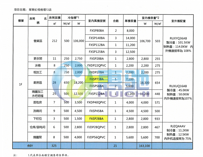 深圳蛇口店空調(diào)技術(shù)配置表