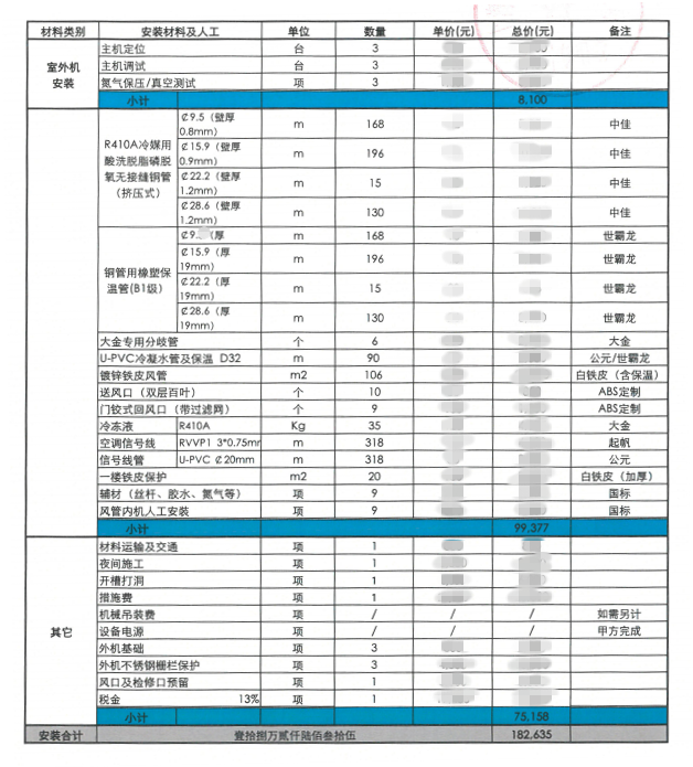 安裝配置報(bào)價(jià)表