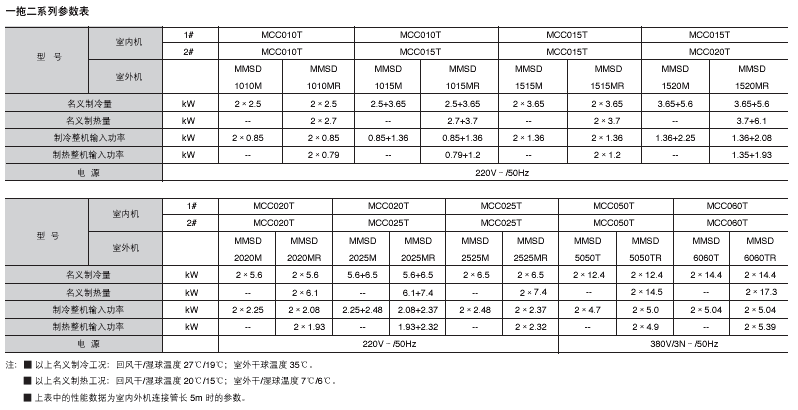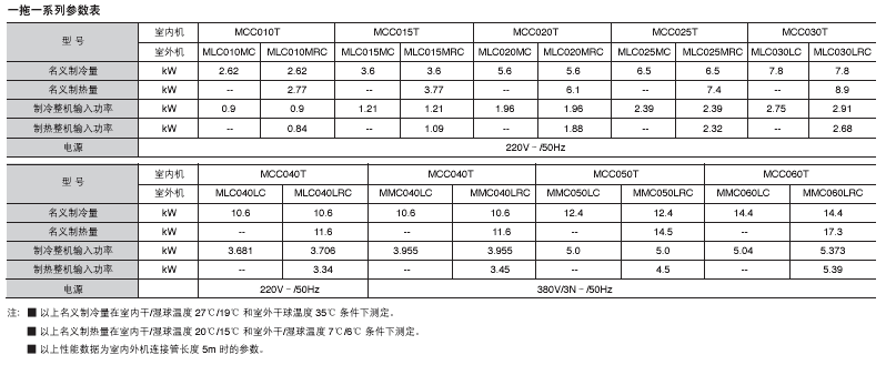 ̖MCC010T~MCC060T 2.62~14.4kW Ɵ2.77~17.3kW 䄩HCFC-22