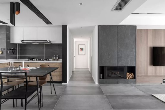 雖然沒(méi)有直接光源,卻通過(guò)不同形式的光效渲染,生成一種“無(wú)影照明”。在墻壁埋藏?zé)魩В専艄庀袼粯酉催^(guò)墻面,為空間增添現(xiàn)代感。