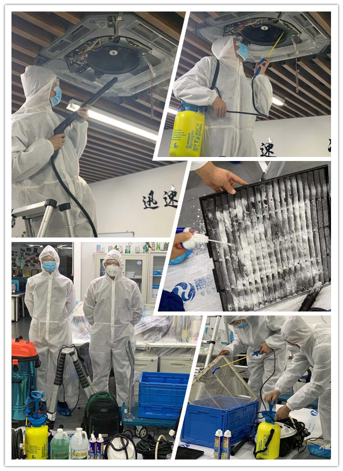 新型冠狀病毒的主要傳播途徑是通過呼吸道飛沫傳播,當(dāng)帶病毒的飛沫附著在通風(fēng)系統(tǒng)內(nèi)的顆粒物中傳播開來,污染室內(nèi)空氣,就會(huì)大大提高室內(nèi)人員感染病毒的風(fēng)險(xiǎn),導(dǎo)致肺炎疫情加劇。因此對(duì)中央空調(diào)進(jìn)行有效的清洗、消毒迫在眉睫。